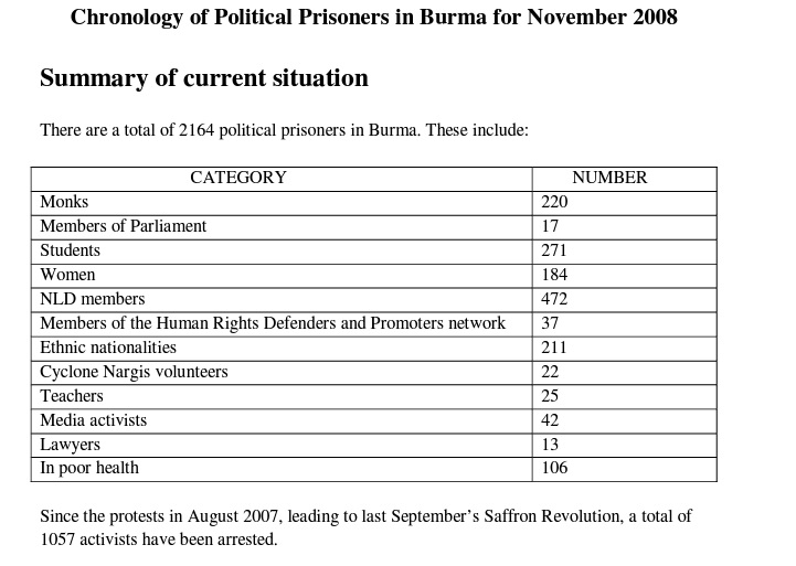 November 2008 AAPP Monthly Chronology