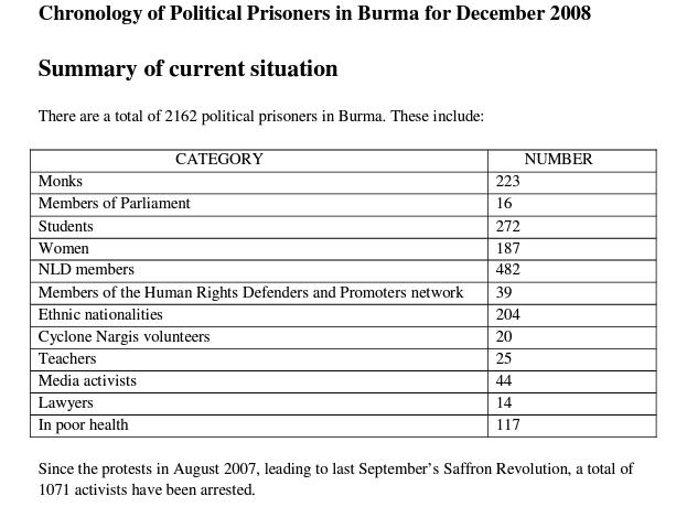 December 2008 AAPP Monthly Chronology