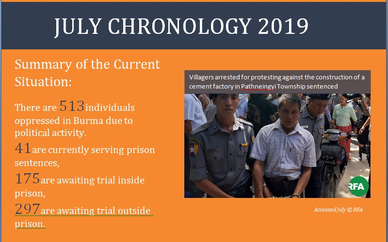 Monthly Chronology of July 2019 and Current Political Prisoners list