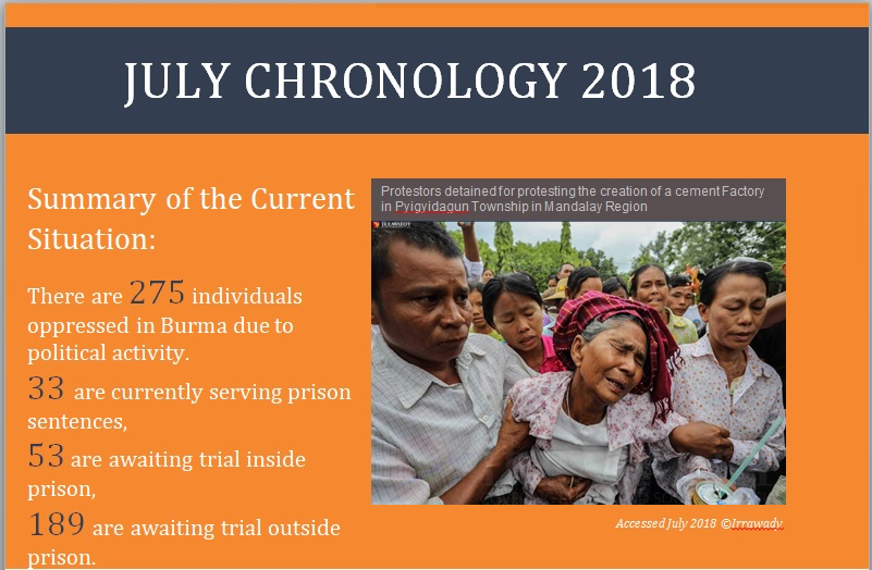 July Month in Review, Chronology and Current Political Prisoners list