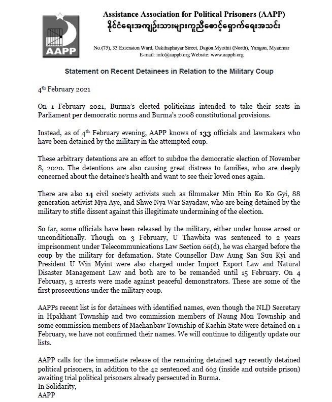 Statement on Recent Detainees in Relation to the Military Coup