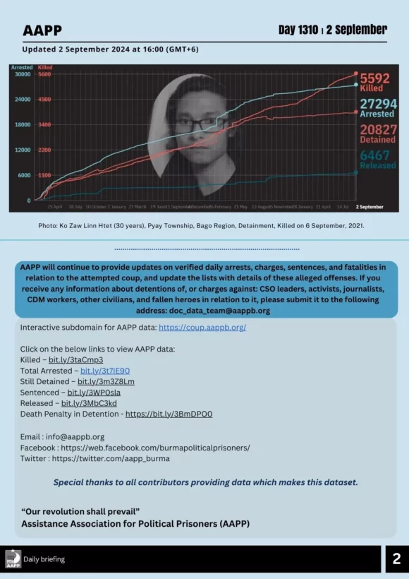 The Assistance Association for Political Prisoners (Burma), otherwise known as AAPP, is a human rights organization based in Mae Sot, Thailand and Rangoon, Burma. AAPP advocates for the release of all remaining political prisoners in Burma and for the improvement of their quality of life during and after incarceration. AAPP has developed rehabilitation and assistance programs for those political activists who have been released while continuing to document the ongoing imprisonment of political activists in Burma.
