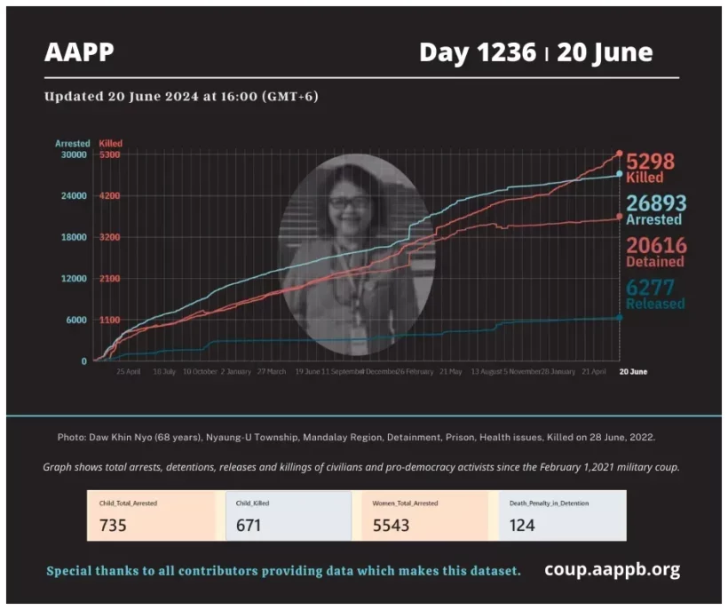 The Assistance Association for Political Prisoners (Burma), otherwise known as AAPP, is a human rights organization based in Mae Sot, Thailand and Rangoon, Burma. AAPP advocates for the release of all remaining political prisoners in Burma and for the improvement of their quality of life during and after incarceration. AAPP has developed rehabilitation and assistance programs for those political activists who have been released while continuing to document the ongoing imprisonment of political activists in Burma.