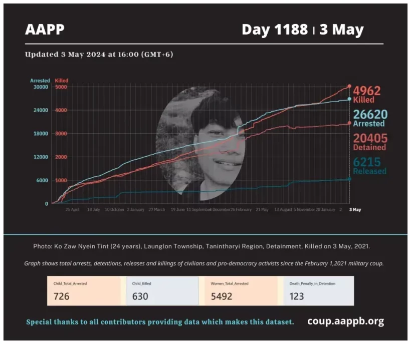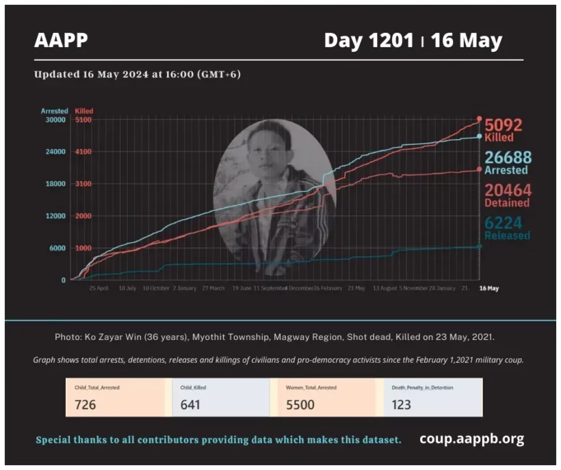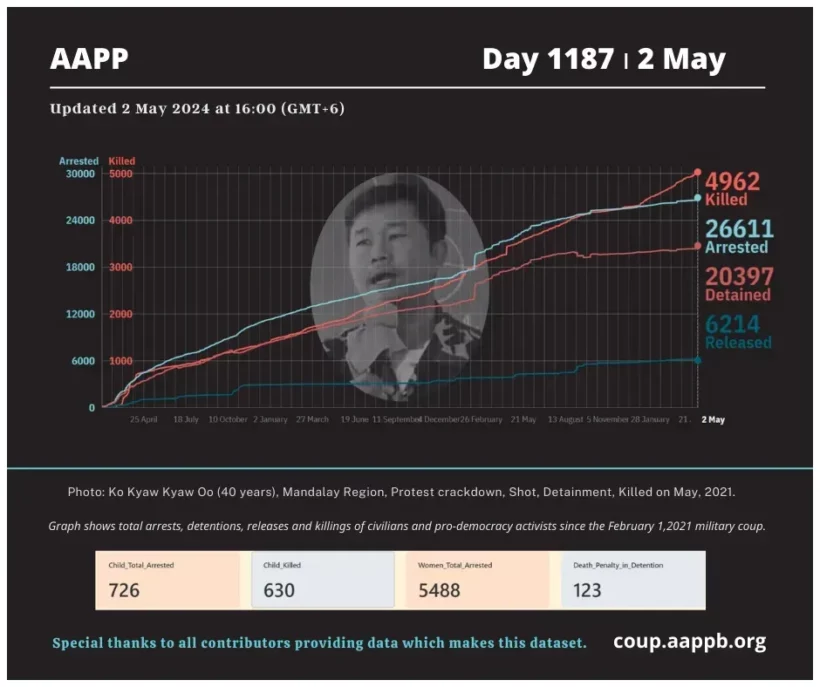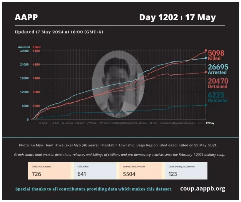The Assistance Association for Political Prisoners (Burma), otherwise known as AAPP, is a human rights organization based in Mae Sot, Thailand and Rangoon, Burma. AAPP advocates for the release of all remaining political prisoners in Burma and for the improvement of their quality of life during and after incarceration. AAPP has developed rehabilitation and assistance programs for those political activists who have been released while continuing to document the ongoing imprisonment of political activists in Burma.