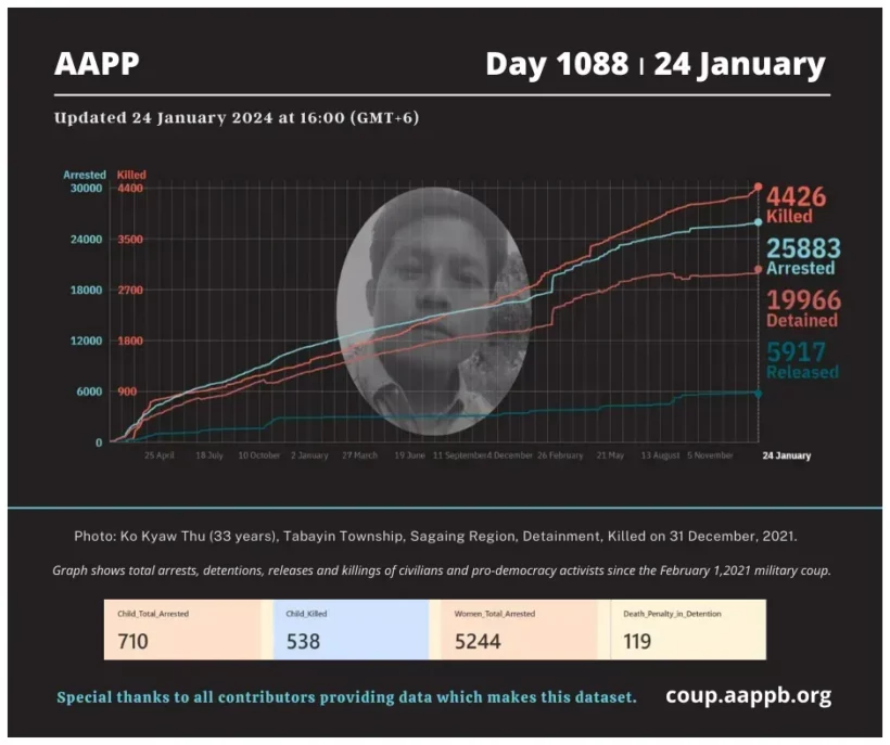 The Assistance Association for Political Prisoners (Burma), otherwise known as AAPP, is a human rights organization based in Mae Sot, Thailand and Rangoon, Burma. AAPP advocates for the release of all remaining political prisoners in Burma and for the improvement of their quality of life during and after incarceration. AAPP has developed rehabilitation and assistance programs for those political activists who have been released while continuing to document the ongoing imprisonment of political activists in Burma.