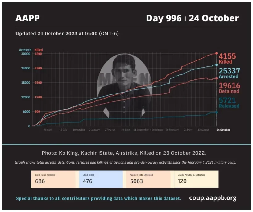 The Assistance Association for Political Prisoners (Burma), otherwise known as AAPP, is a human rights organization based in Mae Sot, Thailand and Rangoon, Burma. AAPP advocates for the release of all remaining political prisoners in Burma and for the improvement of their quality of life during and after incarceration. AAPP has developed rehabilitation and assistance programs for those political activists who have been released while continuing to document the ongoing imprisonment of political activists in Burma.
