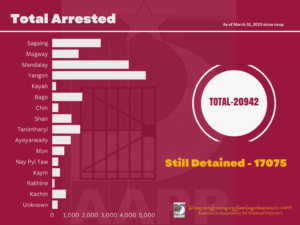 Graphs of arrest and death data as of March 31, 2023 collected and compiled by the Assistance Association for Political Prisoners (AAPP) since the February 1, 2021 military coup.April 1, 2023
