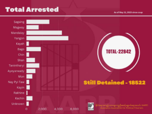 Graphs of arrest and death data as of May 31, 2023 collected and compiled by the Assistance Association for Political Prisoners (AAPP) since the February 1, 2021 military coupJune 1, 2023