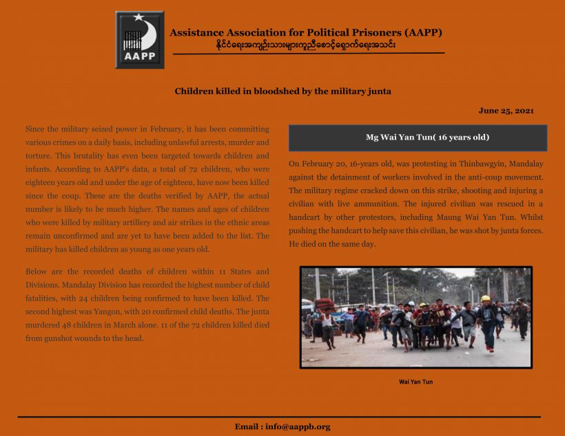 Children have been killed in the bloodshed by the military junta