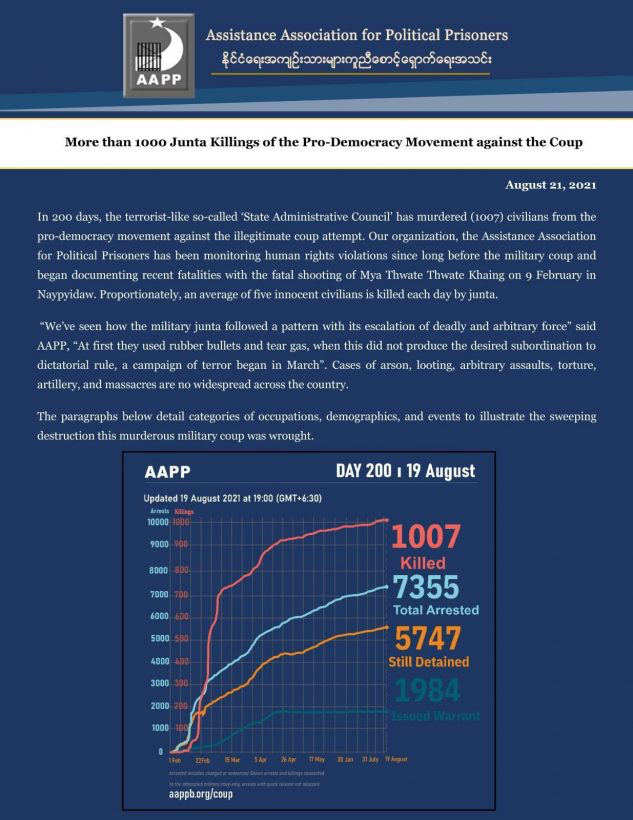More than 1000 Junta Killings of the Pro-Democracy Movement against the Coup
