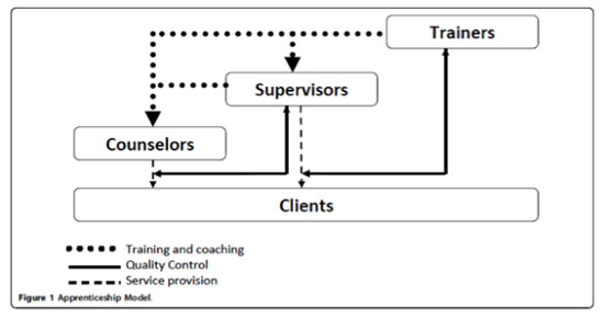 The practice of counseling former political prisoners started in 2011. Due to a lack of understanding of mental problems, JHU developed a sustainable Apprenticeship Model. The aim is to create a sustainable program, where professional mental health counselors train local MHAP teams in a variety of mental health counseling and therapy methods. Local clinical supervisors provide on-going assistance, training and leadership to counselors, whilst supervisors offer support and ongoing training to local clinical supervisors. Through both these processes, decisions regarding treatment plans are closely monitored.