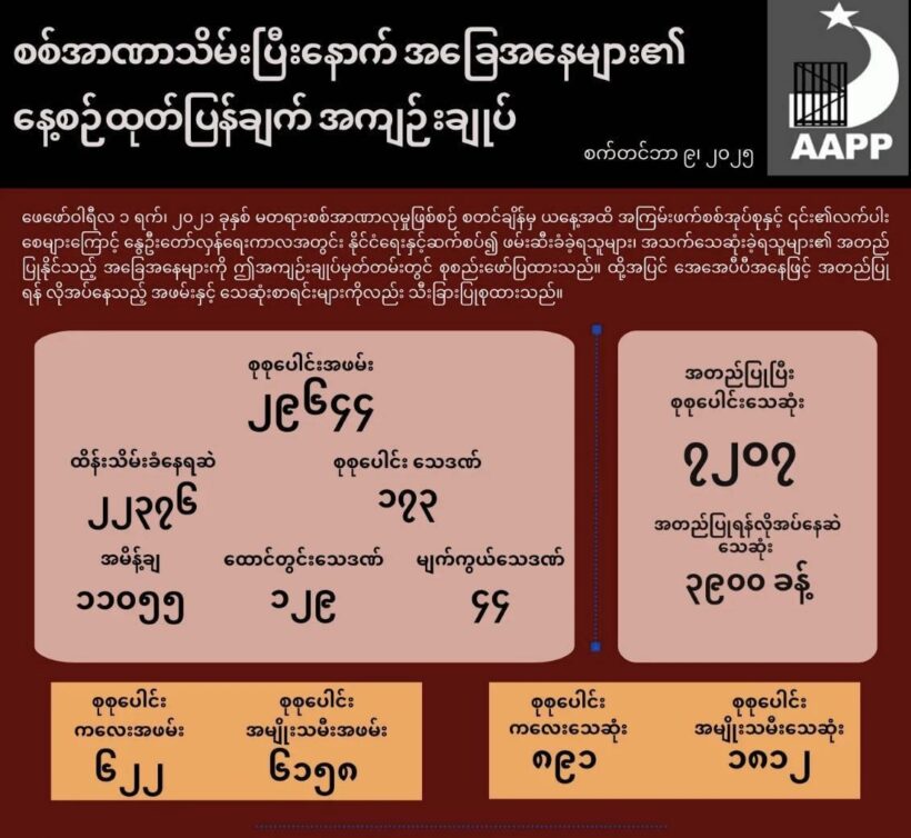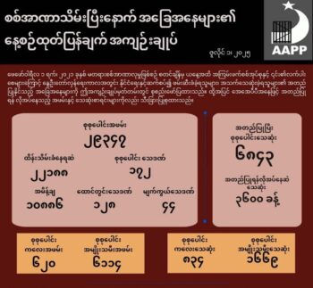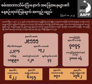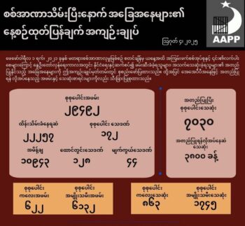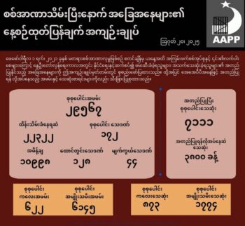 စစ်အာဏာသိမ်းပြီးနောက် လတ်တလောဖြစ်ပေါ်လျက်ရှိသော အခြေအနေများနှင့် ပတ်သက်၍ နေ့စဉ်ထုတ်ပြန်ချက် အကျဉ်းချုပ်စက်တင်ဘာ 23, 2025