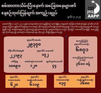 စစ်အာဏာသိမ်းပြီးနောက် လတ်တလောဖြစ်ပေါ်လျက်ရှိသော အခြေအနေများနှင့် ပတ်သက်၍ နေ့စဉ်ထုတ်ပြန်ချက် အကျဉ်းချုပ်ဩဂုတ် 19, 2025