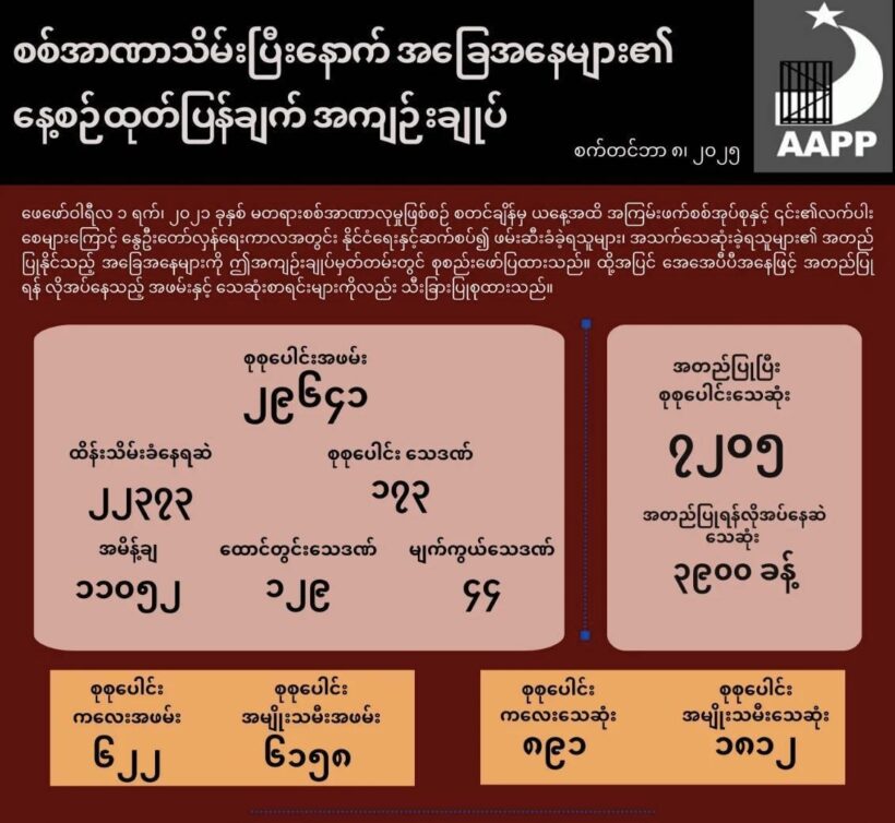 စစ်အာဏာသိမ်းပြီးနောက် လတ်တလောဖြစ်ပေါ်လျက်ရှိသော အခြေအနေများနှင့် ပတ်သက်၍ နေ့စဉ်ထုတ်ပြန်ချက် အကျဉ်းချုပ်ဩဂုတ် 29, 2025
