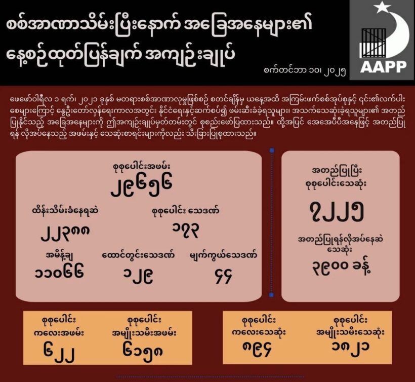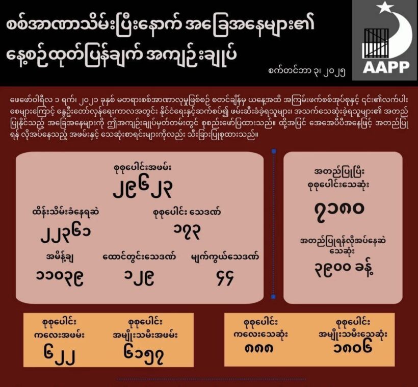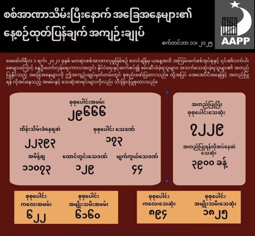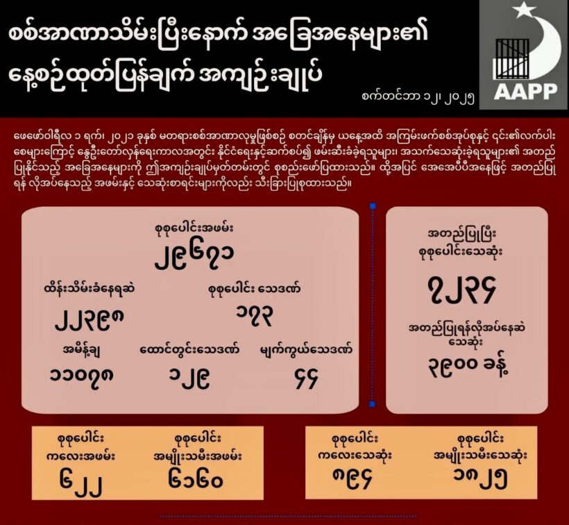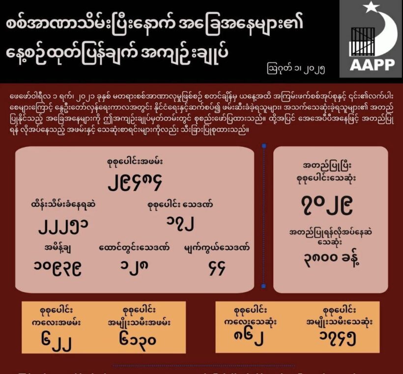 စစ်အာဏာသိမ်းပြီးနောက် လတ်တလောဖြစ်ပေါ်လျက်ရှိသော အခြေအနေများနှင့် ပတ်သက်၍ နေ့စဉ်ထုတ်ပြန်ချက် အကျဉ်းချုပ်ဩဂုတ် 18, 2025